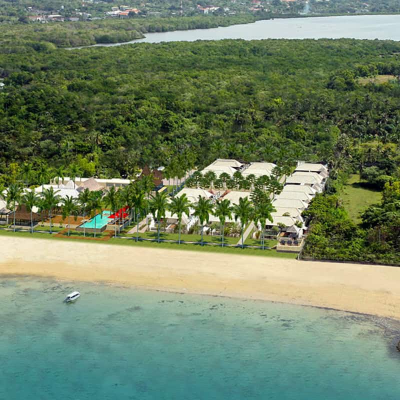 The Royal Santrian is an exclusive retreat located on the picture-perfect beach of Tanjung Benoa, close to the Nusa Dua tourism enclave on Bali’s southern shores.