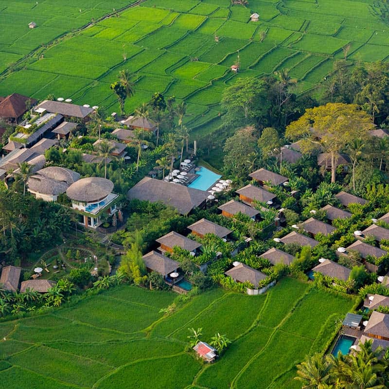 Plataran Ubud Hotel & Spa is surrounded by beautifully preserved gardens that overlook a stunning panorama of verdant paddy fields, a relaxing pool, and a sacred water temple that is more than 100 years old.
