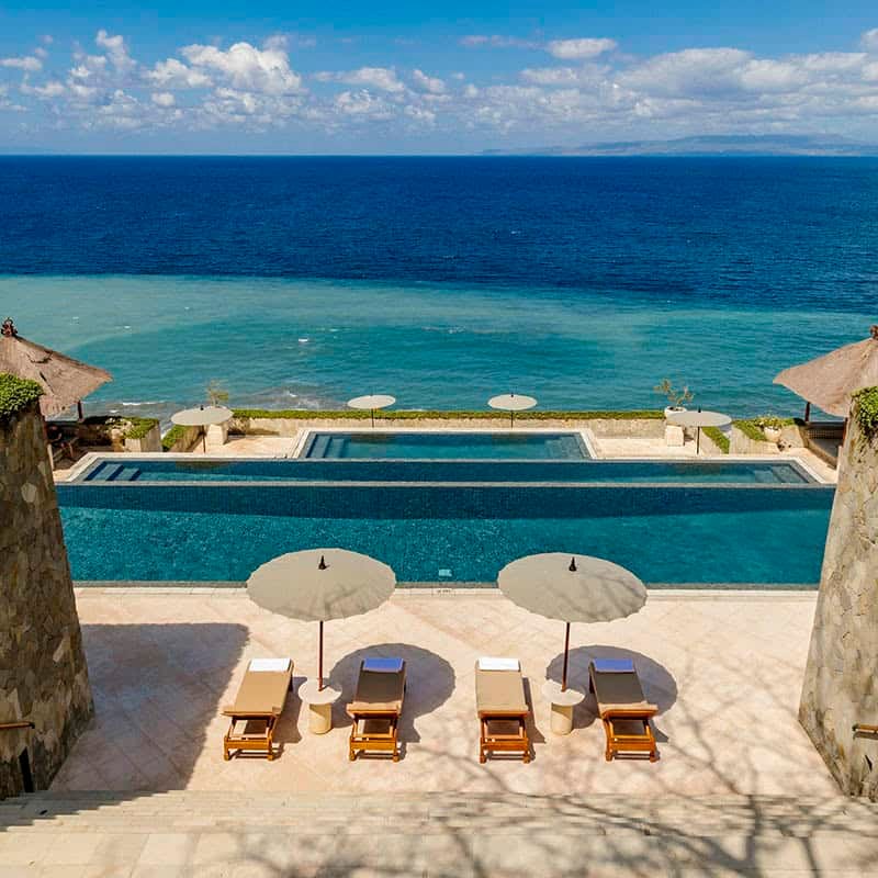 This preeminent luxury destination is perched atop the 160-metre limestone clifftop that snakes along the southern coast of the Bukit peninsula.