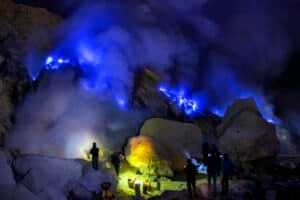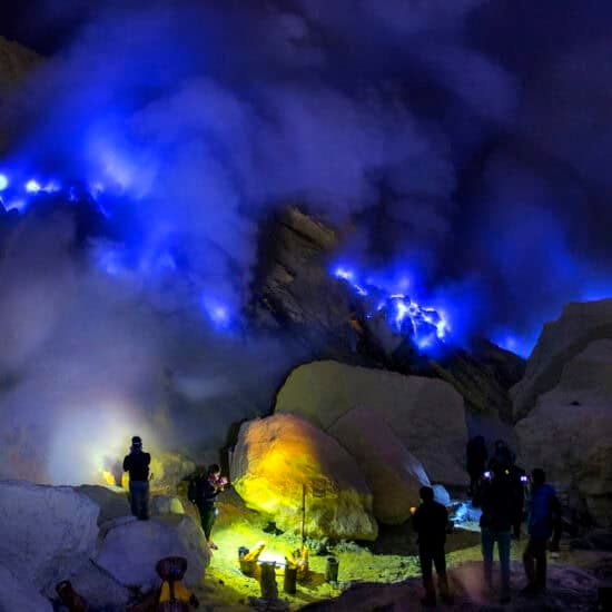 Experience the thrill of a night hike to Ijen Volcano. Marvel at the captivating blue flames and a breathtaking sunrise over Java’s landscape. Enjoy a jeep ride to the base, a 1.5-hour trek, and awe-inspiring views of the sulfur lake.